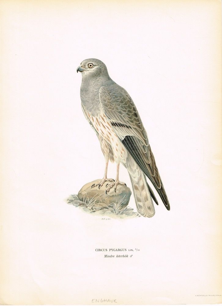 Circus pygarus. Mindre kärrhök (Enghauk). Fra verket “Svenska fåglar efter naturen och på sten ritade ... “