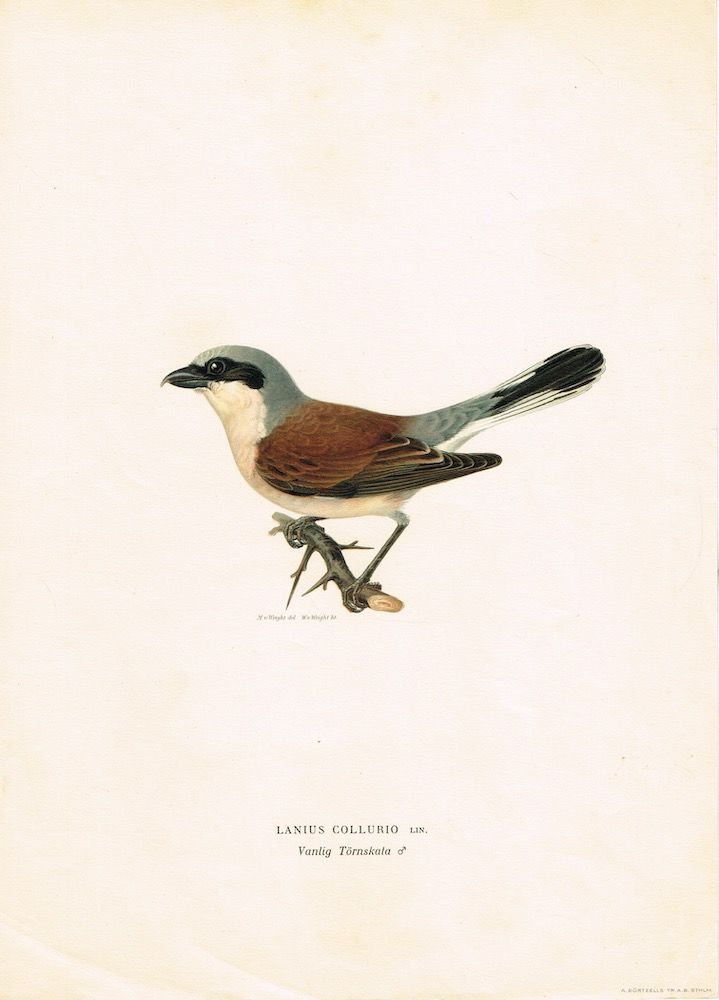 Lanius collurio. Canlig törnskata (Tornskate). Fra verket “Svenska fåglar efter naturen och på sten ritade ... “