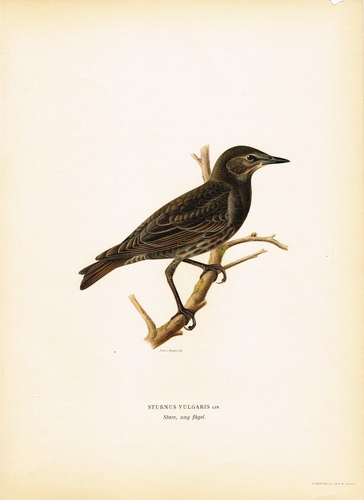 Sturnus Vulgaris. Stare, ung fågel (Stær). Fra verket “Svenska fåglar efter naturen och på sten ritade ... “