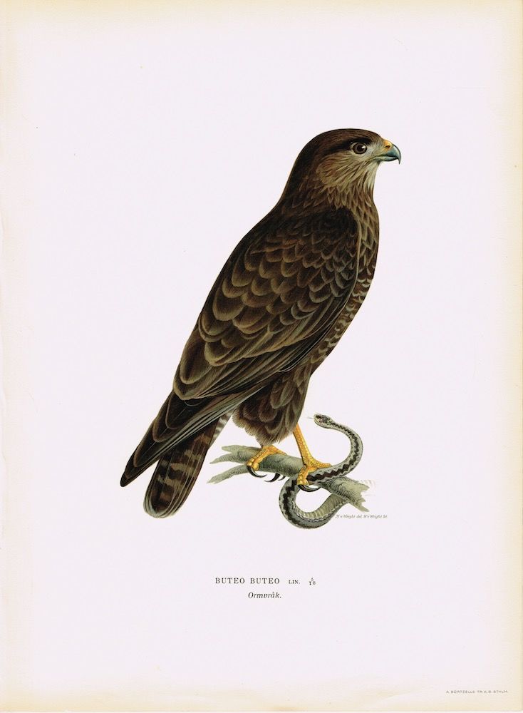 Buteo buteo. Ormvråk (Musvåk). Fra Svenska fåglar efter naturen och på sten ritade ...