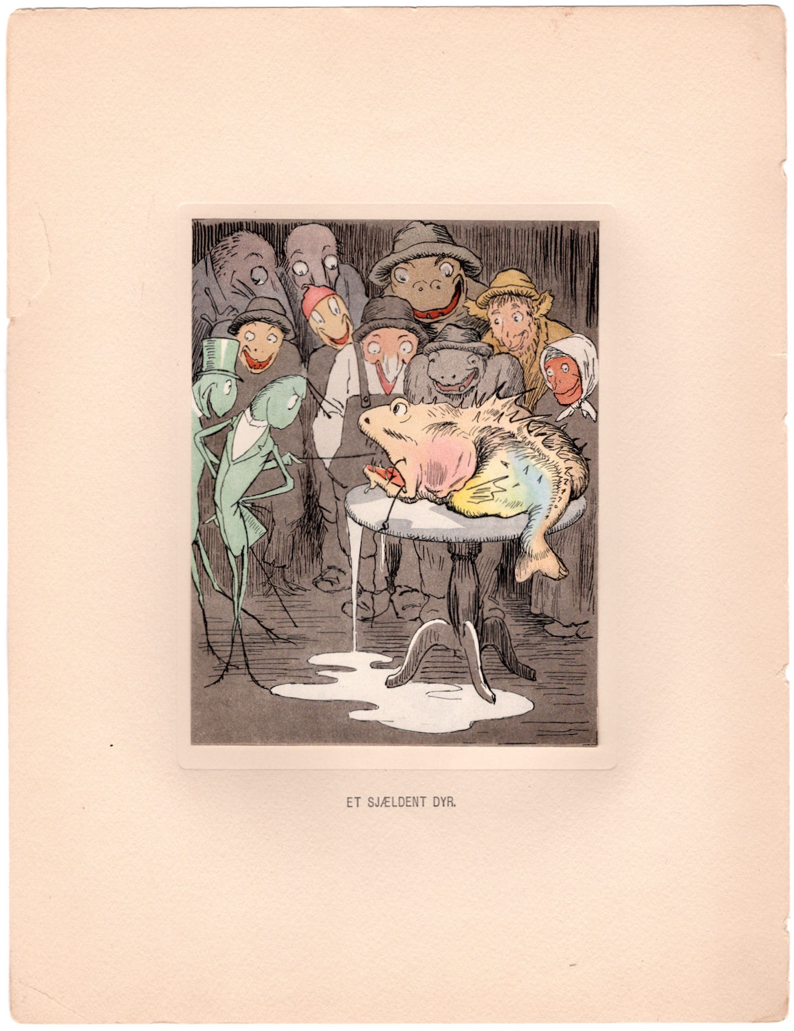 København, 1893. Originalt oppklebet fargelitografi, som utgitt. Papirmål 32,5 x 24,5 cm. Trykket er 17 x 13 cm. En rift i venstre kant. . (Ernst Bojesens Kunstforlag) Trykk. .