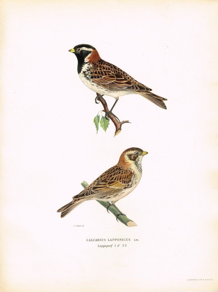 Calcarius Lapponicus. Lappsparf. (Lappspurv). Fra verket “Svenska fåglar efter naturen och på sten ritade ... “
