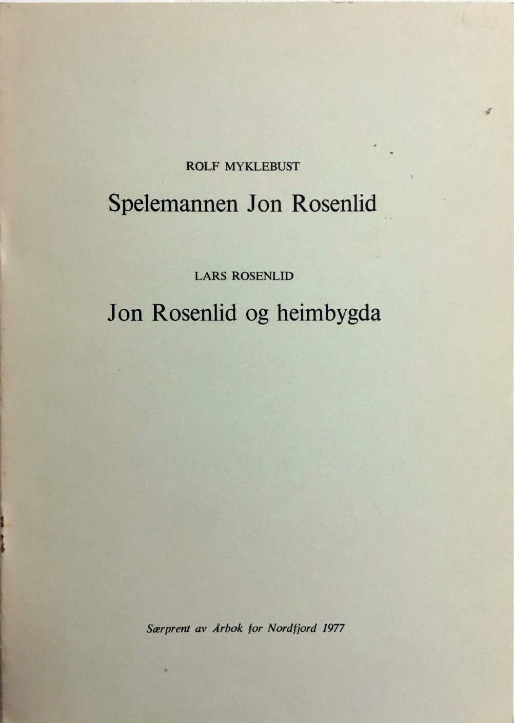Særprent av Årbok for Nordfjord 1977. 8vo. 8 s. To bilete. Stifta hefte. Lysegrønt typografisk omslag. I god stand