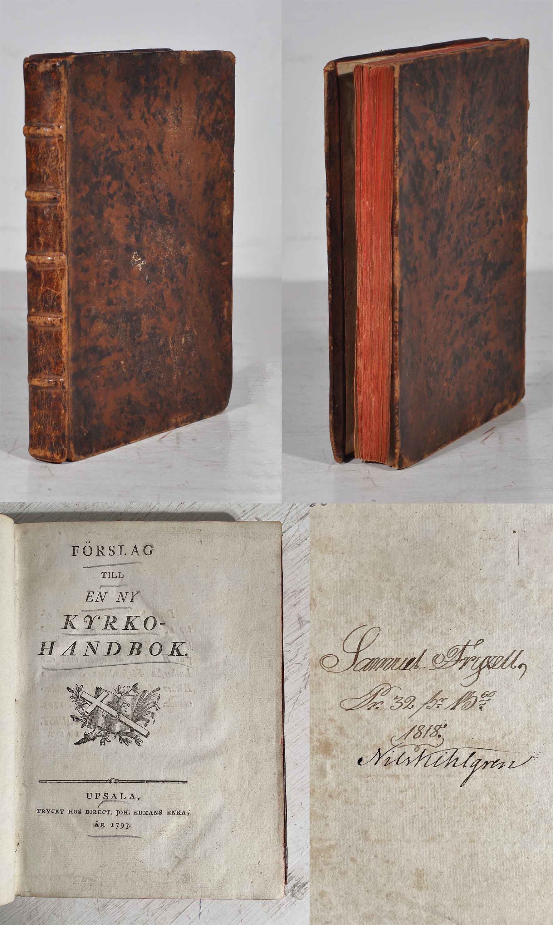 Uppsala, J. Edmans enka, 1793. 8:o. (8),118 s. Samtida marmorerat skinnbd med upphöjda bind och blindlinjerad rygg men ingen titel. Röda snitt. Något nött rygg och ytliga småskador på pärmarna. Enstaka fläckar, främst på de första sidorna. Yttermarginalen omväxlande skuren eller mycket bred. Genomgående interfolierad med skrivblad i kvartoformat, dock utan anteckningar. Blyertsunderstrykningar på titelsidan. Några förstrykningar i bläck på de sista bladen. Magnus Fryxells och Samuel Fryxells namnteckningar på frampärmens insida, den senare daterad 1818, samt ytterligare en namnteckning Nils Kihlgren.