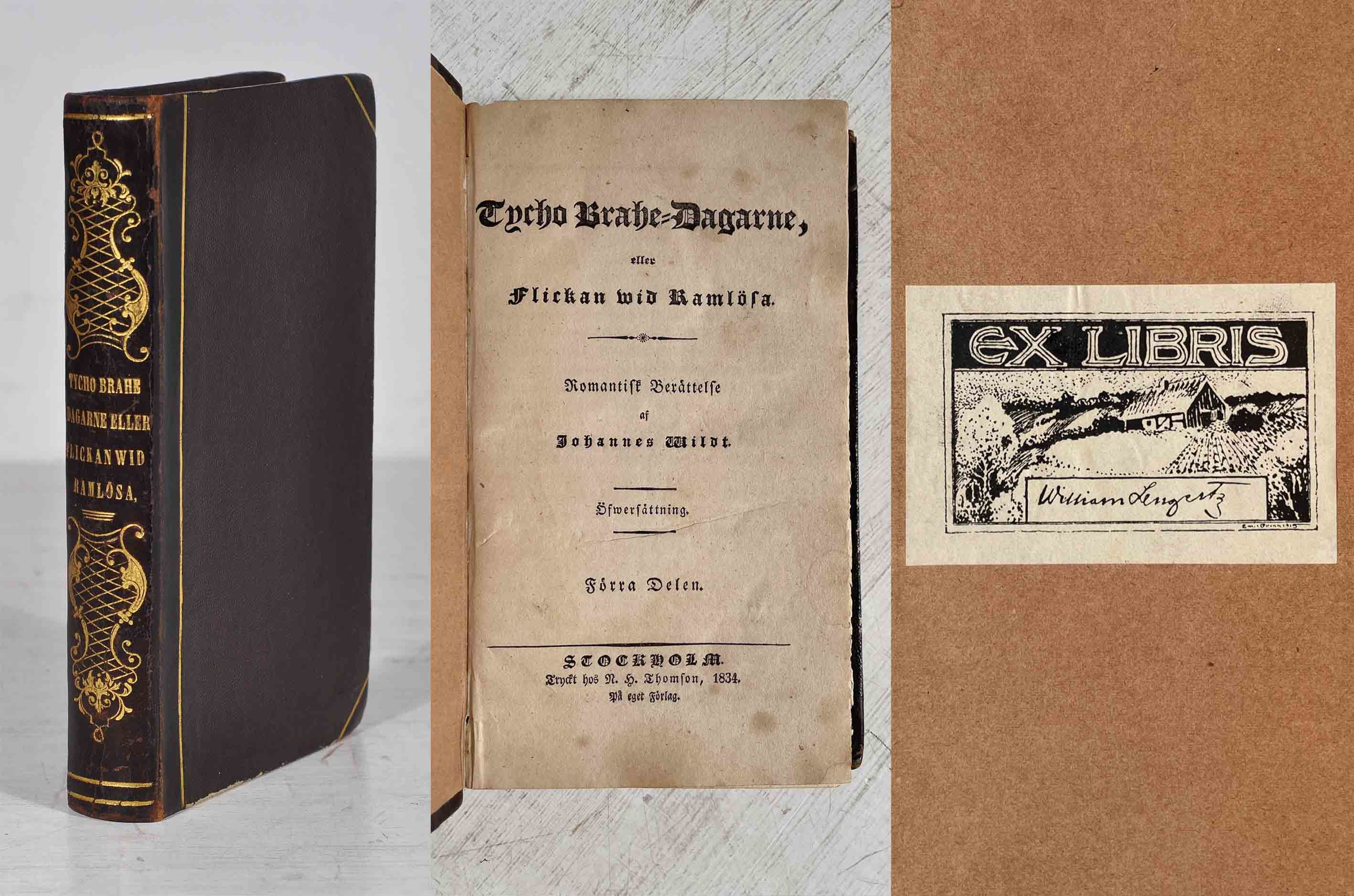 Sthlm, N. H. Thomson, 1834. 8:o. (2),204 + (2),224 s. Samtida svart hfrbd med dekorativt gulddekorerad rygg. Brunstänkta snitt. Ryggen lätt nött. Titelbladet och de sista sidorna något lagerfläckiga. Stor svag brunfläck upptill i nästan hela första delen. Exlibris William Lengertz. På försättsbladet namnteckning Ingvar utan förnamn daterad 1922 kompletterad med gåvotillskrift till Erik Ask-Upmark från 1943. Översatt av boktryckaren N. H. Thomson. Dansken Johannes Wildt (1782-1836) var verksam som skådespelare, teaterledare och författare. Flera av Wildts romaner översattes till svenska. William Lengertz (1891-1962) startade Lengertz antikvariat 1918 som en tid hade ett antal filialer i olika skånska städer. Han hade en stor privat Tycho Brahesamling. Läkaren Erik Ask-Upmark (1901-85) var vid sidan om sitt ordinarie arbete 1939-45 och 1949-73 sommartid verksam som brunnsintendent och läkare vid Ramlösa hälsobrunn. Av allt att döma var boken en gåva från Sven Ingvar (1889-1947) som varit överläkare vid Ramlösa brunn somrarna 1922–30.