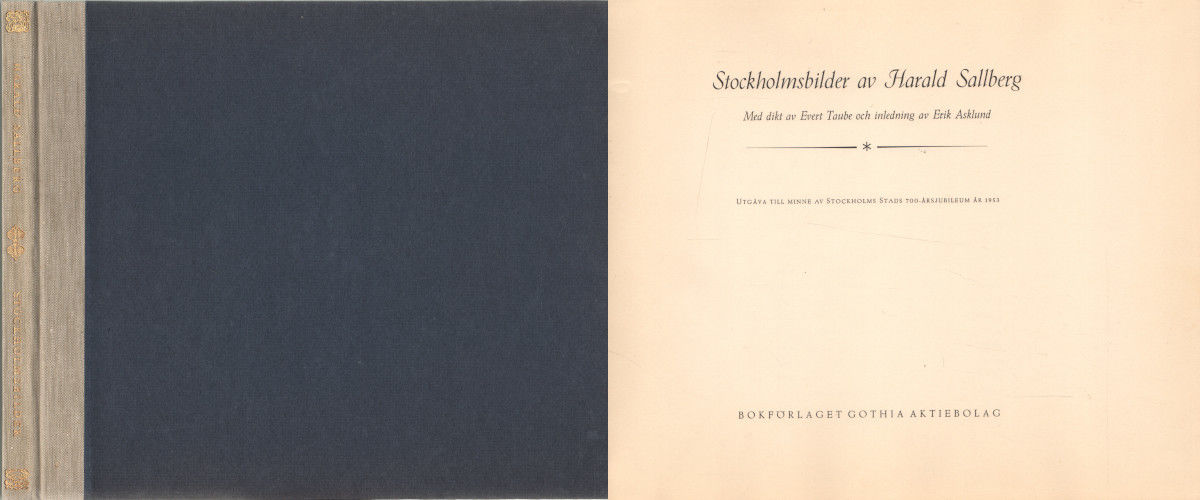 Med dikt av Evert Taube och inledning av Erik Asklund. Stockholm: Gothia, 1953. Upplaga utgiven i 800 exemplar. 21, (2) textsidor + 32 planschblad. 23,5x27,5 cm. Inbunden i förlagets klotryggsband. Utan skyddsomslag. Illustrerad i svartvitt efter etsningar av Harald Sallberg.
