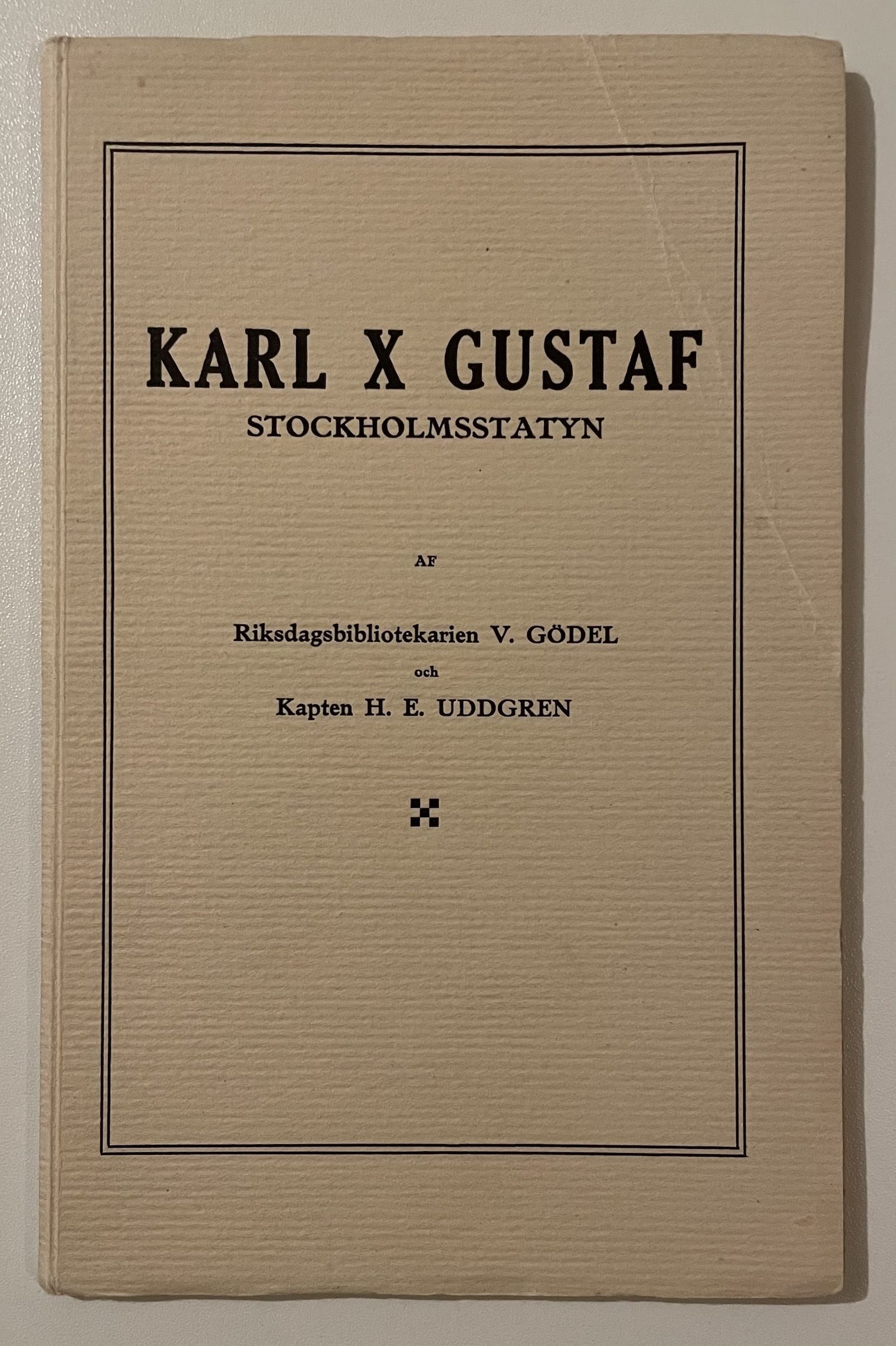 Tryckt i 50 numrerade exemplar, varav detta är nr 20. Utkom i samband med statyns avtäckande på nationaldagen 1917. De första sidorna med en kort biografi över Karl X Gustav och sidorna 7-34 med en mängd biografier under rubriken ”Männen omkring konungen”. Sidorna 35-40 behandlar själva statyn. Statyn skapades av Gustaf Malmquist och skänktes av Karl X Gustafföreningen till Nordiska museet, utanför vilket den fortfarande står.