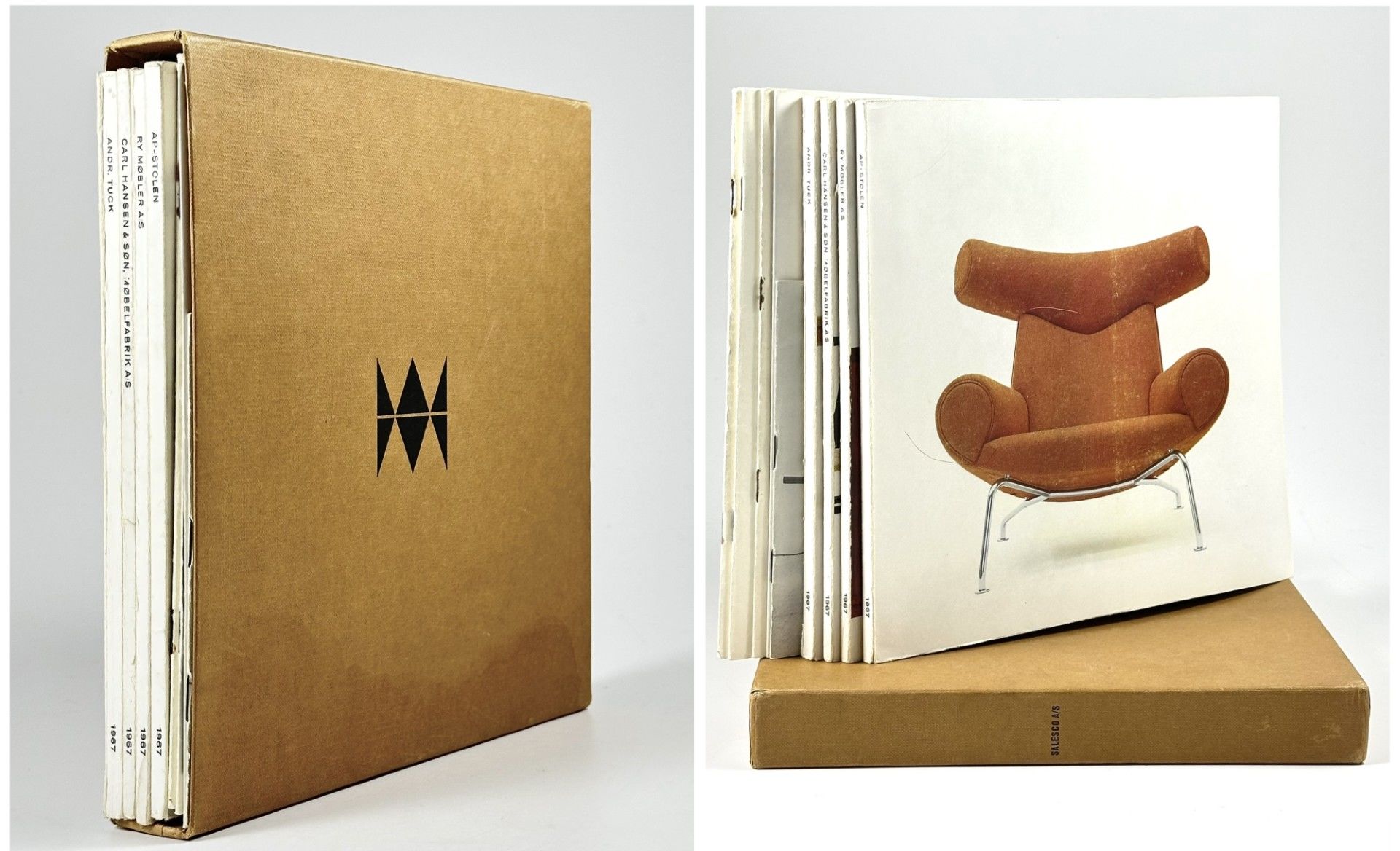 4 volumes. Salesco, Copenhagen 1967. Quadrangle 4to. Illustrated with photos in b/w. Original soft, white covers in original decorated slipcase. Included in this particular set are pricelists from AP Stolen, A/S Ry Møbler and a small folder from Getama. Some traces of use. Very good-.