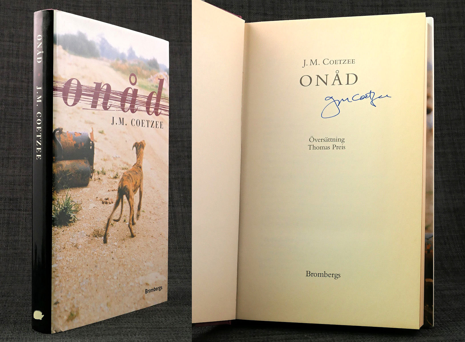 Ny svensk upplaga. Nobelpristagare i litteratur 2003. - - - Swedish edition of "Disgrace", reprinted in the year of Coetzee's Nobel Prize in 2003, hardbound with dustjacket, very fine, and signed by the author on title: "J M Coetzee".