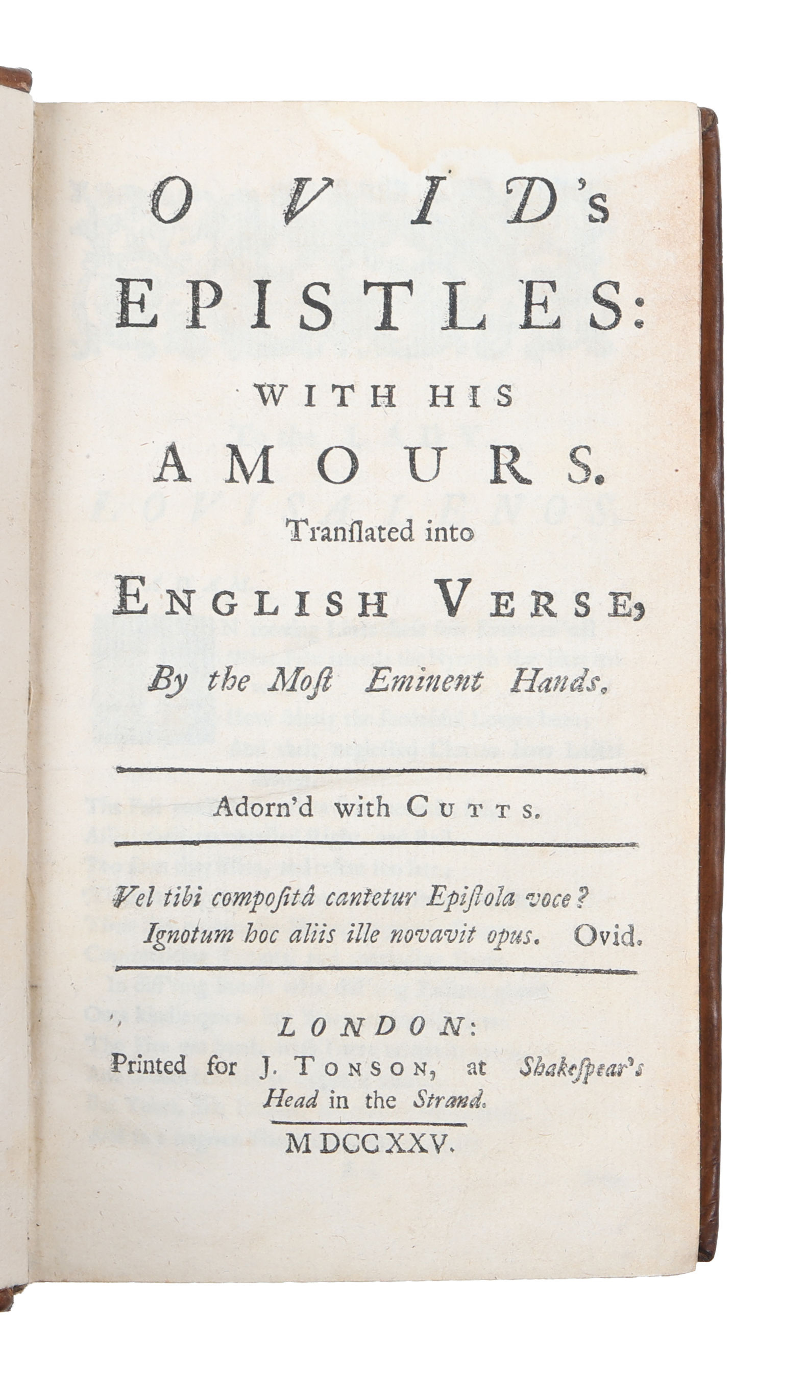 Ovid's Epistles, with his Amours.: Translated into English Verse, By the Most Eminent Hands. Adorn'd with Cutts.