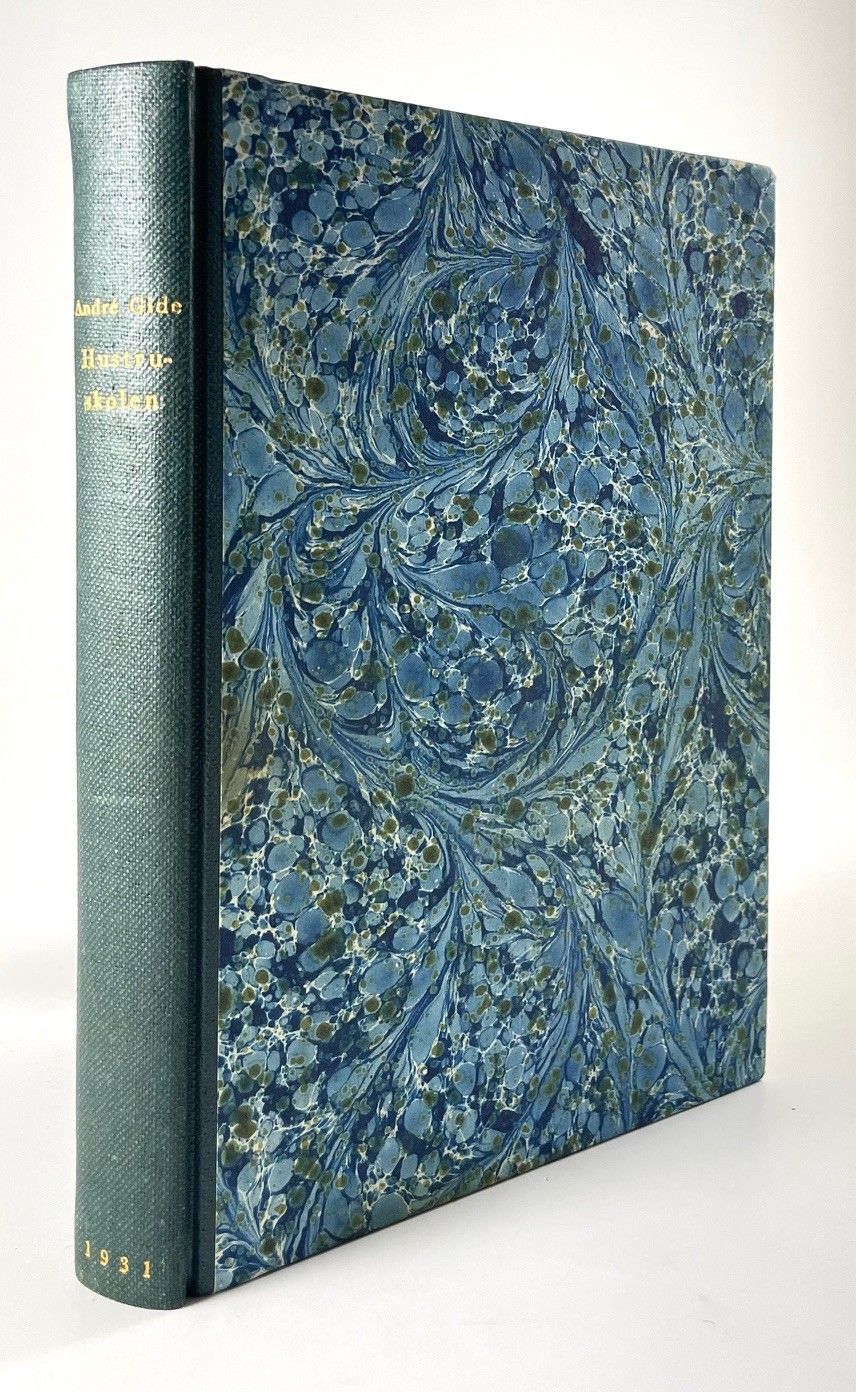 Jespersen & Pio, København 1931. 207 sider. Indbundet ubeskåret med orig. for- og bagomslag i et nydeligt milimeter-bind med ryg i grønblåt lærred. Sidepapir i samme blågrønne nuancer (Knud Erik Larsen). Ryg og sidepapir ganske let plettet.